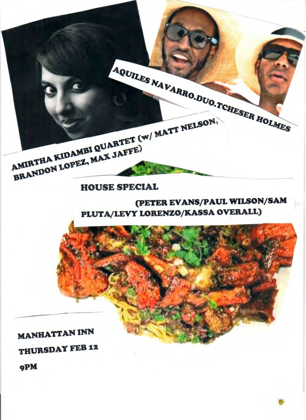 The DUO performs an opening set at the Manhattan Inn, for an evening of amazing music featuring Amirtha Kidambi and her ensemble, and Peter Evans' new group House Special!!.